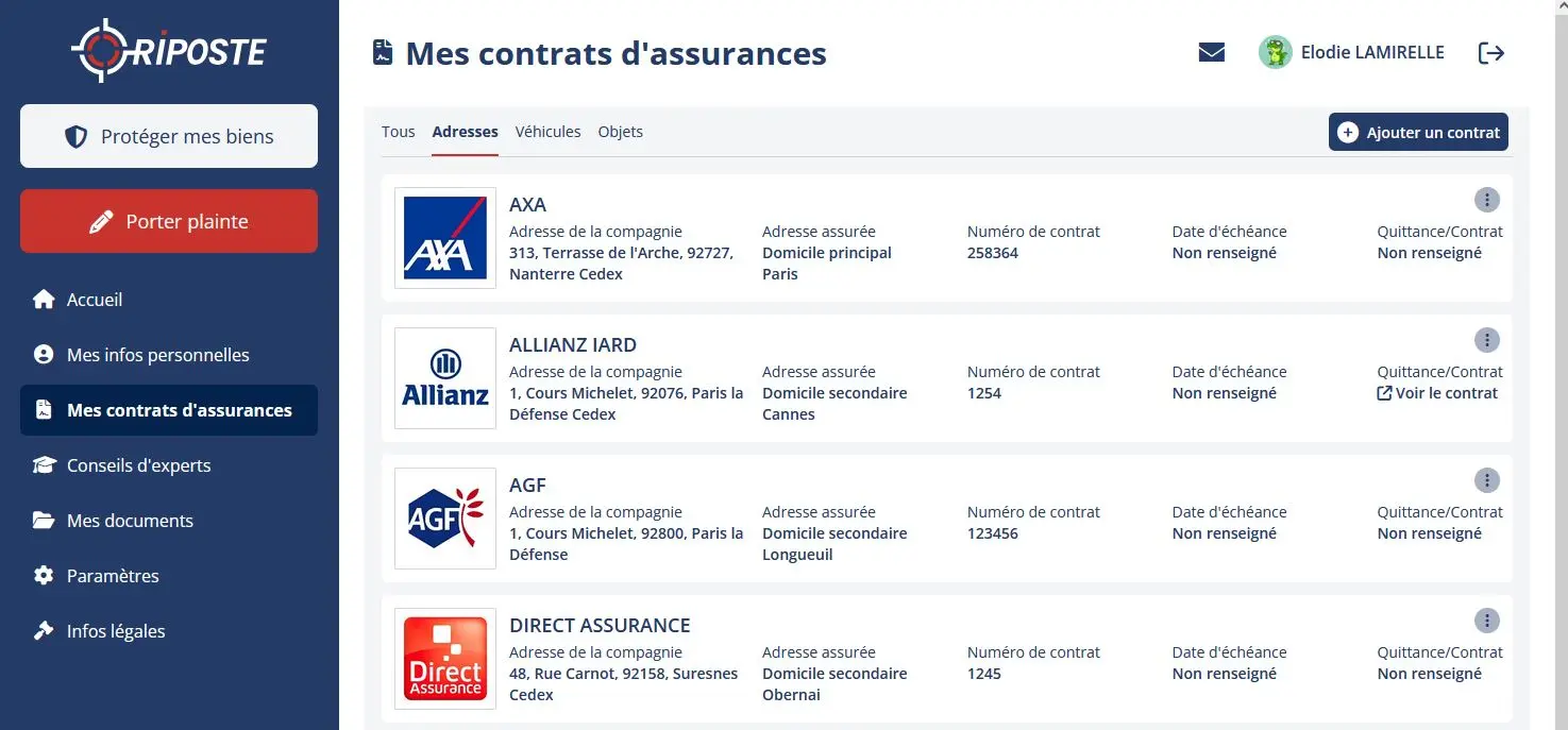 • Une rubrique assurance pour regrouper tous vos contrats