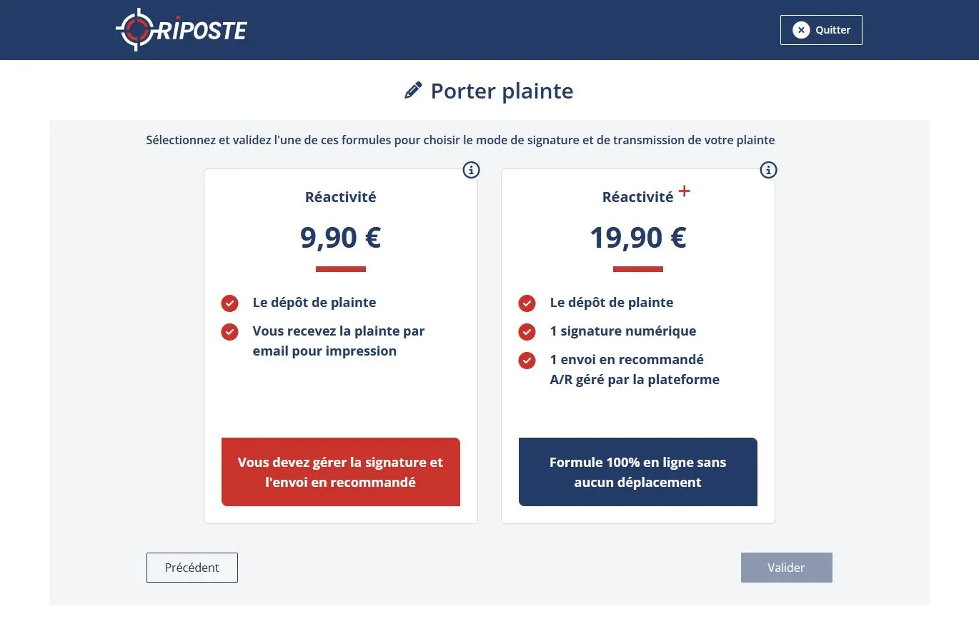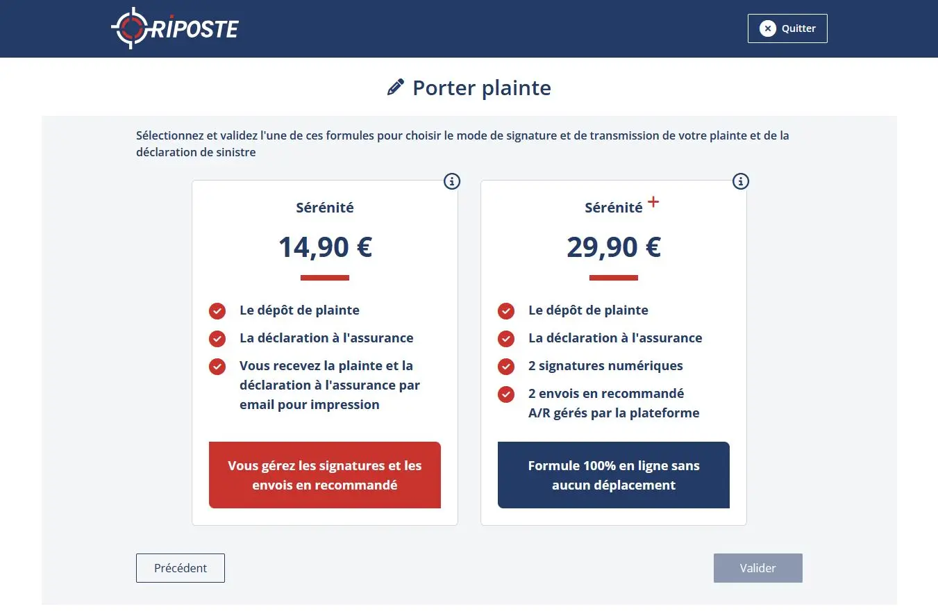 • Seul le dépôt d’une plainte est payant, à partir de 9,90€ selon la formule d’envoi